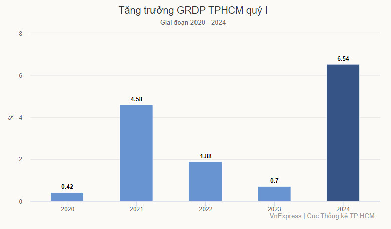 Về mặt số liệu, các chuyên gia thừa nhận do quý I năm ngoái kinh tế TP HCM khá yếu nên đã tạo mức nền so sánh thấp. Khi hoạt động kinh doanh đầu 2024 cải thiện thì tạo ra kết quả tăng trưởng tương đối cao.