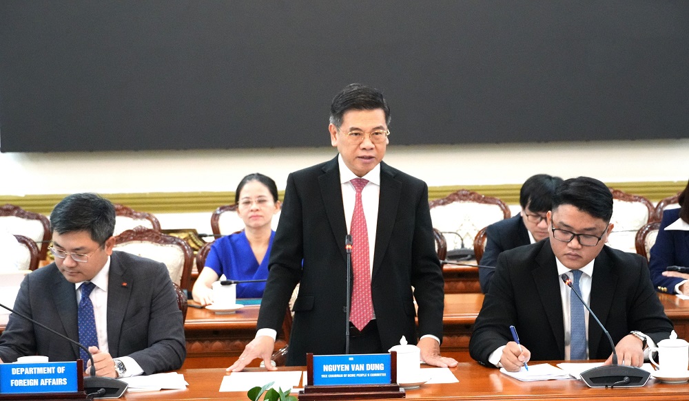 Phát biểu tại buổi làm việc, Phó Chủ tịch UBND TP.Hồ Chí Minh Nguyễn Văn Dũng cho biết, từ ngày 01/7/2025, Việt Nam triển khai sắp xếp lại các đơn vị hành chính và thực hiện mô hình chính quyền địa phương 2 cấp nhằm tạo điều kiện thuận lợi hơn cho người dân và doanh nghiệp trong nước và nước ngoài trong đầu tư, kinh doanh, góp phần đẩy mạnh cải cách hành chính và nâng cao chất lượng phục vụ người dân và doanh nghiệp.