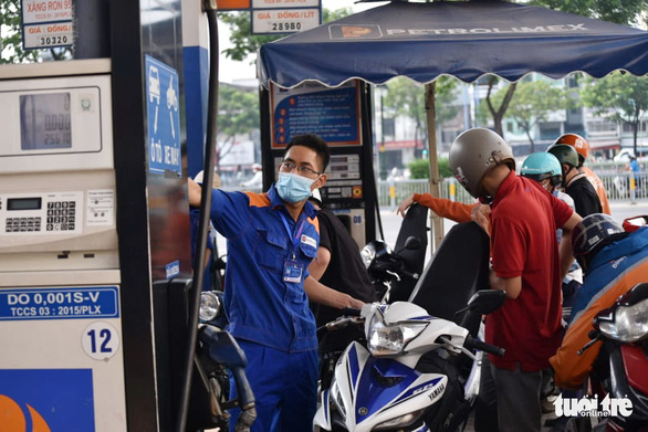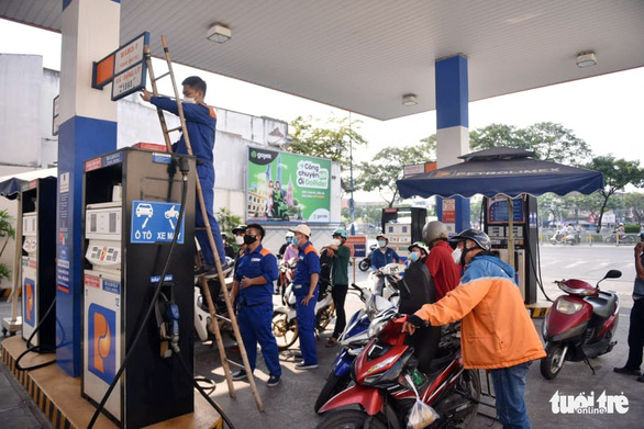 Người dân đổ xăng theo mức giá mới sau 15h chiều 11-3 tại một cây xăng ở quận 4, TP.HCM – Ảnh: NGỌC PHƯỢNG