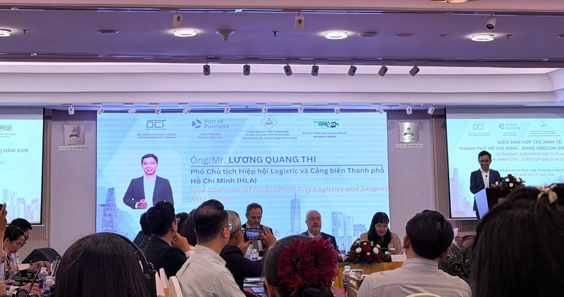 Đại diện ITPC, Business Oregon, Port of Portland, HLA, Tân Cảng tại Diễn đàn Hợp tác kinh tế Thành phố Hồ Chí Minh – Bang Oregon (Hoa Kỳ) năm 2026.