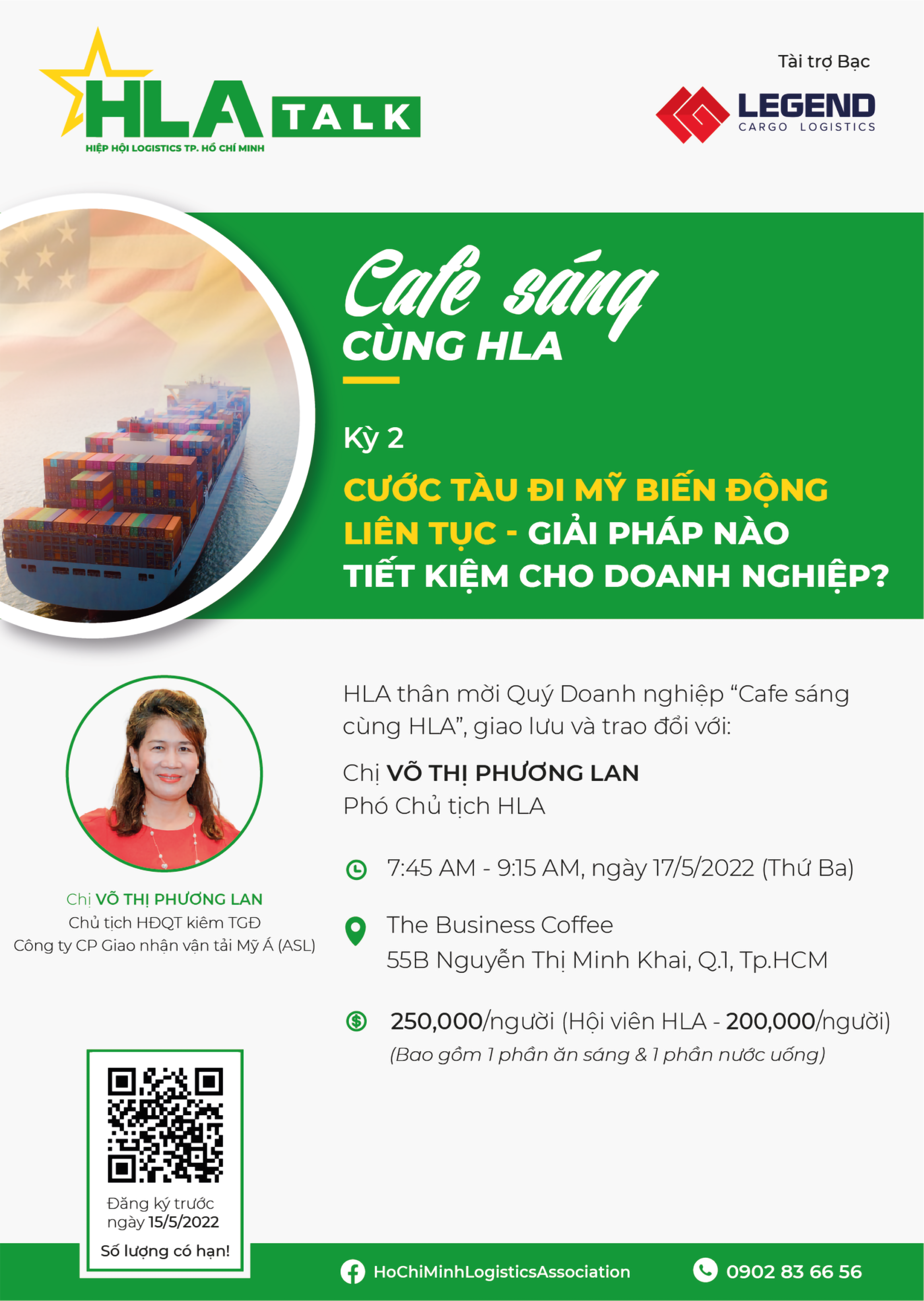 Ban Chấp hành HLA mời Quý Hội viên/Quý Doanh nghiệp, đơn vị trong cộng đồng hệ sinh thái Logistics đến gặp gỡ, giao lưu với chị Võ Thị Phương Lan – Phó Chủ tịch HLA, CT HĐQT kiêm TGĐ Công ty CP Giao nhận Vận tải Mỹ Á (ASL) , tại HLA Talk kỳ 2 với chủ đề: