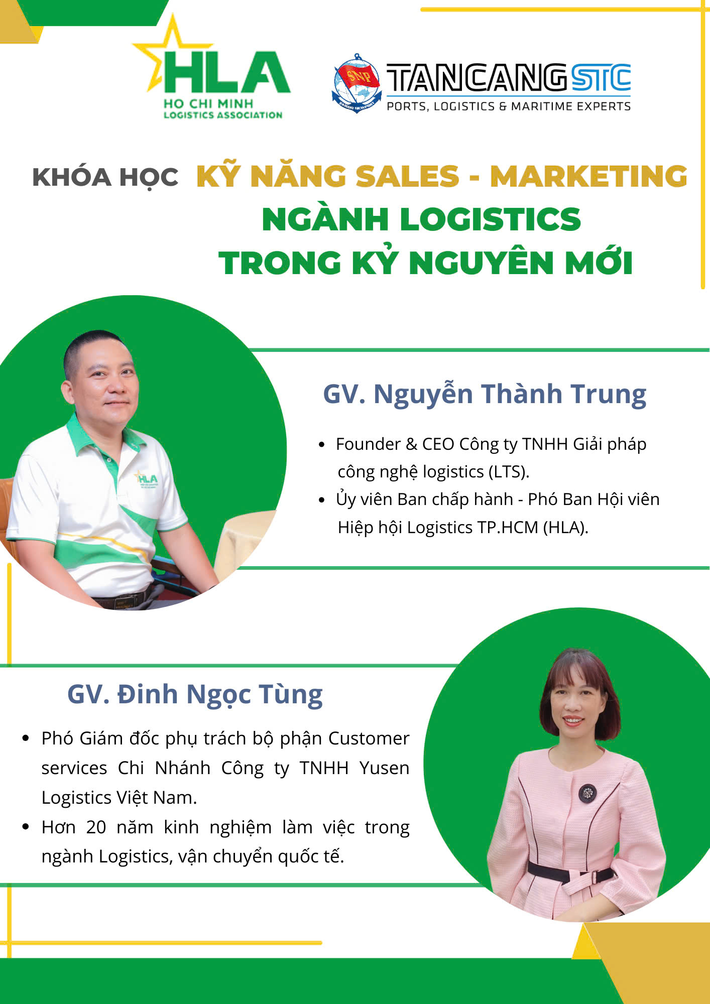 Ngày 14 – 15/6/2025, Hiệp hội Logistics TP.HCM (HLA) phối hợp cùng Công ty TNHH Phát triển Nguồn nhân lực Tân Cảng–STC (TC-STC) khai giảng khoá học: “KỸ NĂNG – SALES MARKETING NGÀNH LOGISTICS TRONG KỶ NGUYÊN MỚI“