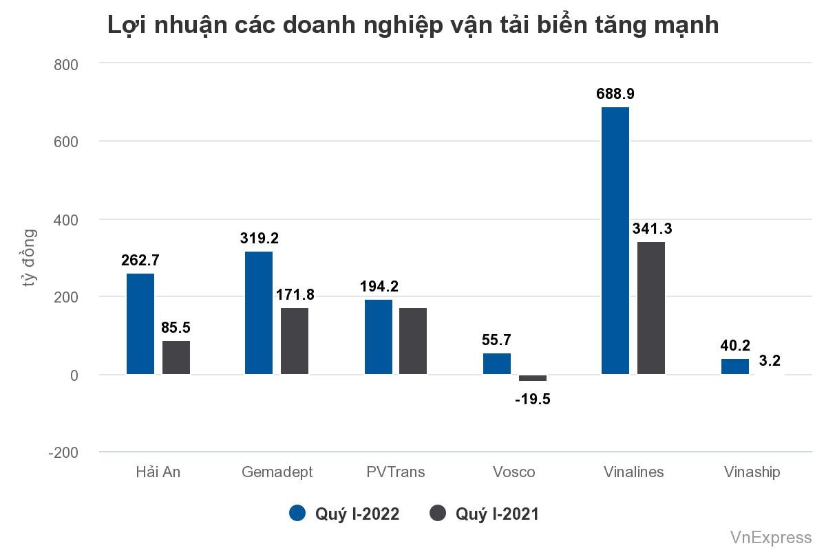 Ngoài ra, giá cước tăng cao cũng hợp sức tạo điều kiện thuận lợi cho ngành vận tải biển. Một doanh nghiệp vận tải cho biết, trong quý I/2022, giá cước vận tải nội địa tăng và giá cho thuê tàu cũng tăng mạnh.