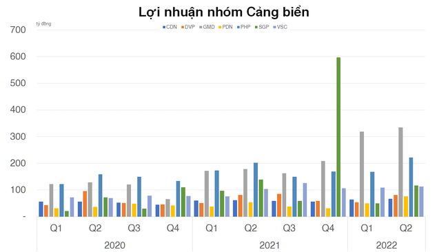 Ở nhóm Cảng biển, lợi nhuận của 7 doanh nghiệp đã đạt 1.825 tỷ đồng trong quý 6 tháng đầu năm, tăng trưởng tới 22,5%.