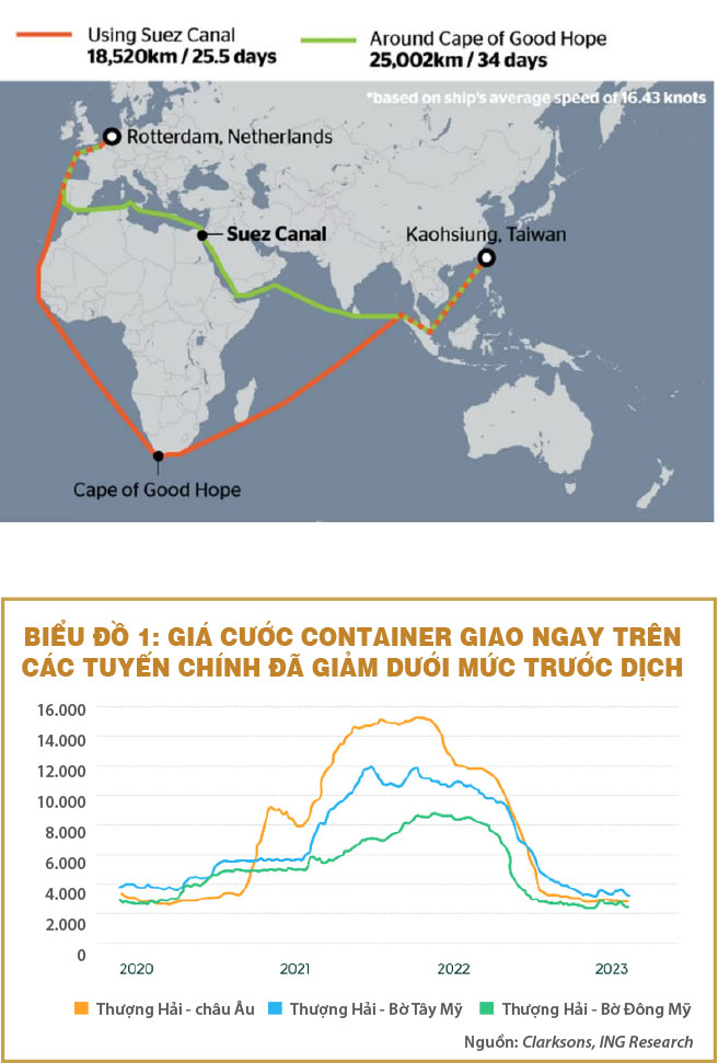 Năm 2023 dần khép lại đánh dấu một giai đoạn sóng gió không thể nào quên với vận tải biển container toàn cầu. Đại dịch Covid-19 bùng phát đột ngột làm kinh tế thế giới chao đảo suốt năm 2020. Đầu năm 2021 cho đến sáu tháng đầu năm 2022 hiện tượng “Shipageddon”(1) bất ngờ đảo chiều ngoạn mục làm tăng cầu – giảm cung (do tắc nghẽn tại nhiều cảng chính trên thế giới) đẩy giá cước vận chuyển lên cao vút chưa từng thấy trong nhiều thập kỷ qua của lịch sử vận tải biển container.