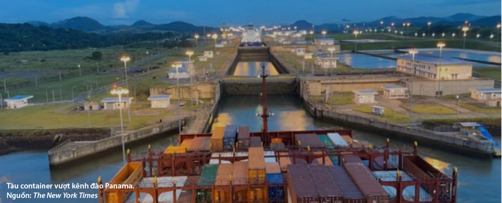 Điểm tắc nghẽn chính thứ hai trên thế giới là kênh đào Panama. Trong tháng 10-2023, kênh đào nhân tạo nối Thái Bình Dương và Đại Tây Dương này gặp hạn hán nghiêm trọng nhất trong lịch sử hoạt động do ảnh hưởng bởi hiện tượng El Nino. Mùa khô ở Panama thường từ tháng 12 đến tháng 4 năm sau. Hành lang Á – Bờ Đông Mỹ đang đứng trước nguy cơ đứt gãy khi tàu thuyền qua đây phải chờ nhiều ngày.